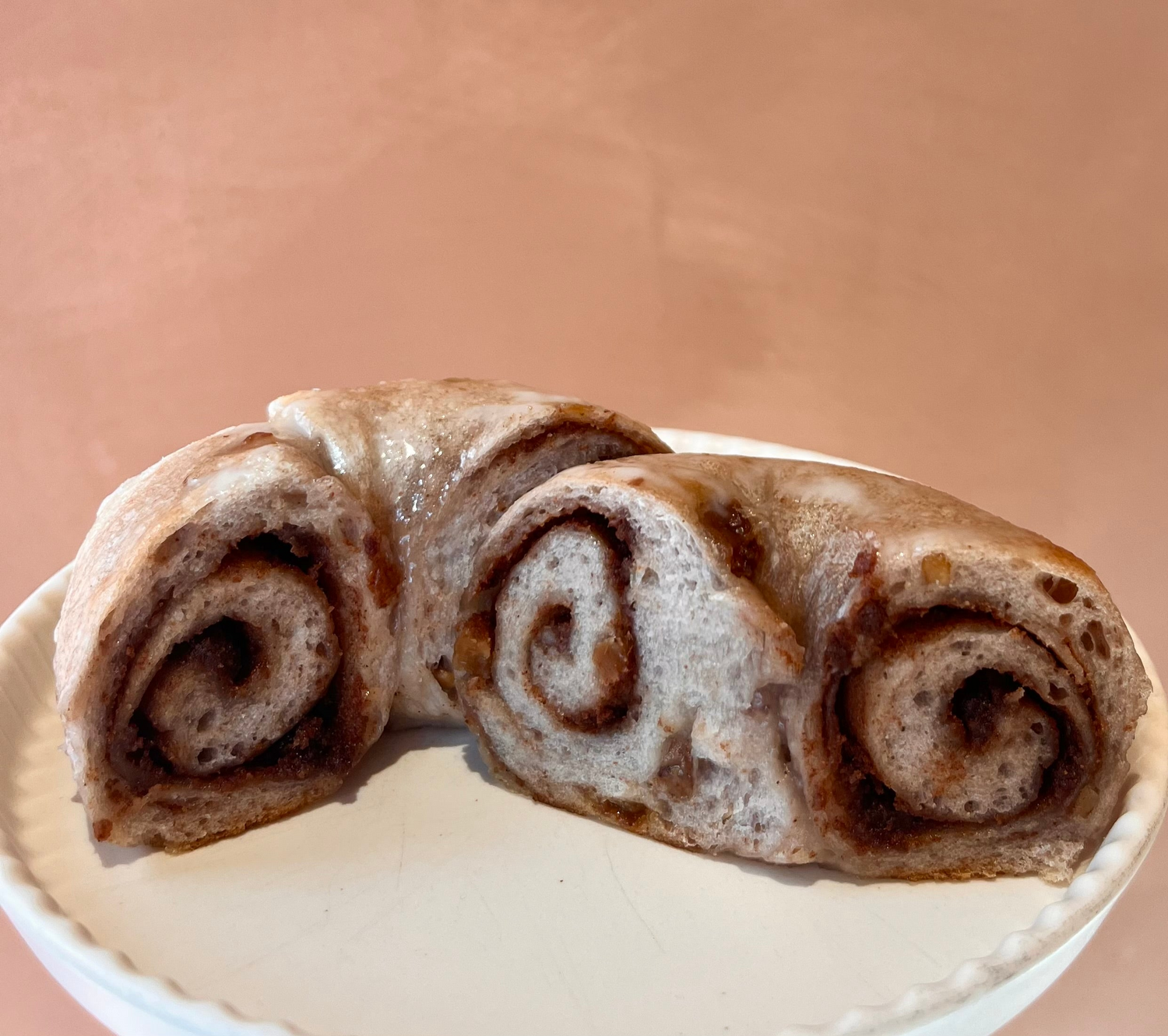 クルミとレーズンを練り込んだもっちり生地に、セイロンシナモンを使用した甘さ控えめのフィリングを巻き込みました。シンプルですがとても味わい深いベーグルです。カットした断面がくるくるとした渦巻き状になっておりますので、ぜひカットしてみてください。