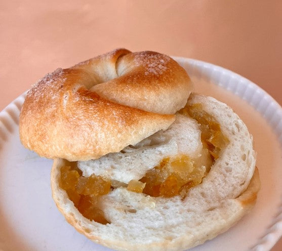 フランスのデザートであるクレープシュゼットのように、バターとオレンジを合わせたベーグルです。コクのある有塩バターと柑橘の爽やかさがよく合います。